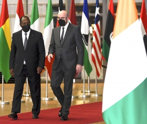 Retour en images sur le dîner de travail offert par le Président du Conseil Européen, M. Charles Michel à S.E.M. Alassane Ouattara et à la Première Dame, Mme Dominique Ouattara à Bruxelles