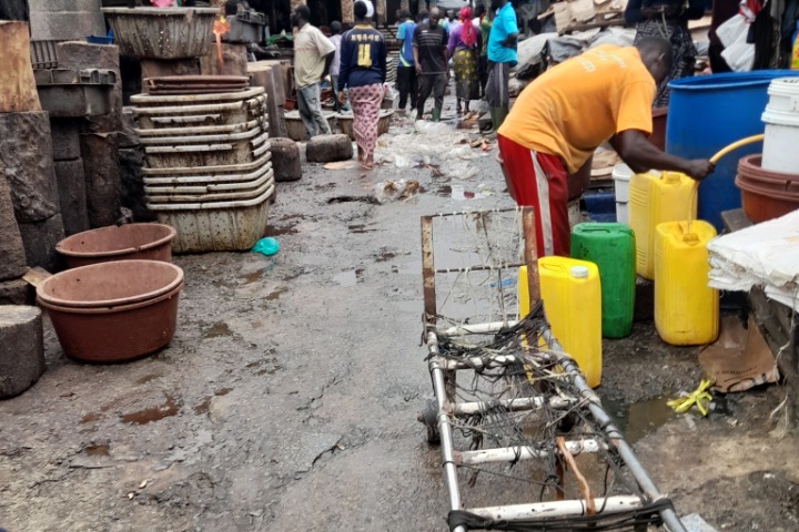 En effet, au milieu des magasins des grandes compagnies de vente de poissons importés, se trouve un petit marché pour des détaillants de poissons frais et congelés. Ce qui frappe du premier coup dans ce marché, est l’insalubrité qui y règne partout. Des ordures de tout genre, jonchent les ruelles du marché, à côté des flaques d’eaux usées. C’est dans cet environnement que le poisson est vendu. Le comble est qu’il est exposé sur de simples cartons, ou sur des toiles en plastique à même le sol, au milieu des eaux usées. Les vendeurs découpent le poisson sur place, pour servir les clients, en majorité des ménagères et des restauratrices, sans aucune précaution de propreté. Et ils semblent très à l’aise dans cet environnement qui, pourtant expose les consommateurs aux maladies. Surtout en ces temps de pluies avec son corollaire de maladies telles que la fièvre typhoïde, le paludisme, la dengue, etc.