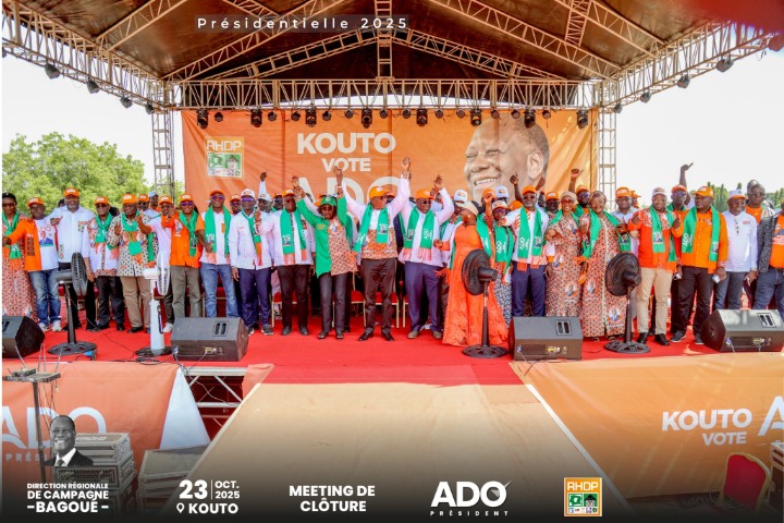 Le directeur régional de campagne du Rassemblement des Houphouétistes pour la Démocratie et la Paix (RHDP), Bruno Nabagné Koné, a invité le jeudi 23 octobre 2025, les populations de la Bagoué à se mobiliser fortement pour le vote, du samedi 25 octobre 2025. C’était au cours du grand meeting de clôture organisé au stade municipal de Kouto, rapporte son service de Communication.