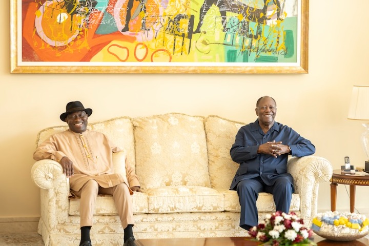 Le Président de la République, S.E.M Alassane OUATTARA, a échangé ce vendredi 24 octobre 2025, à Abidjan, avec une délégation conjointe Elders – UA/CEDEAO, conduite par l’ancien Président de la République du Nigéria, S.E.M Goodluck Jonathan, Chef de la délégation du Forum Ouest Africain des Sages (Elders). Ces délégations sont en Côte d’Ivoire dans le cadre de l’élection présidentielle qui se tiendra, demain, samedi 25 octobre 2025. Le Chef de l’État a exprimé sa joie d’accueillir à Abidjan ces délégations composées d’éminentes personnalités et a dit toute sa confiance quant au bon déroulement du scrutin présidentiel, ce samedi dans notre pays, tout en les remerciant pour leurs conseils.